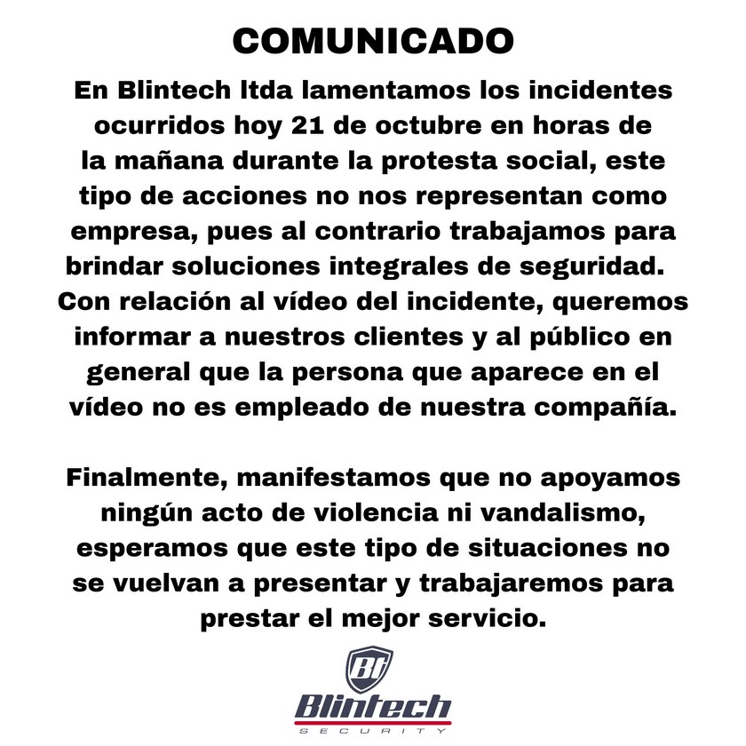 Asimismo, informan en el documento que la compañía no apoya ningún acto de violencia ni vandalismo.