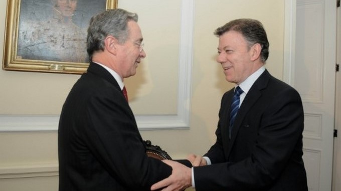 Los expresidentes Álvaro Uribe y Juan Manuel Santos, foto: César Carrión – SIG.
