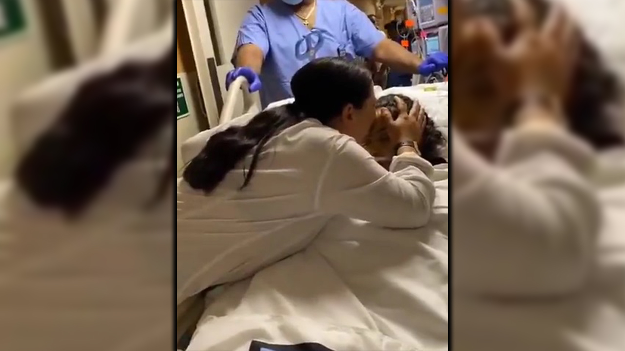 En la grabación se muestra como esta mamá llena de dolor arrastra la camilla de su hija que tenía muerte cerebral e invadida de dolor se llena de fuerzas para darle un beso en la frente a su hija y la bendición, como un último adiós.