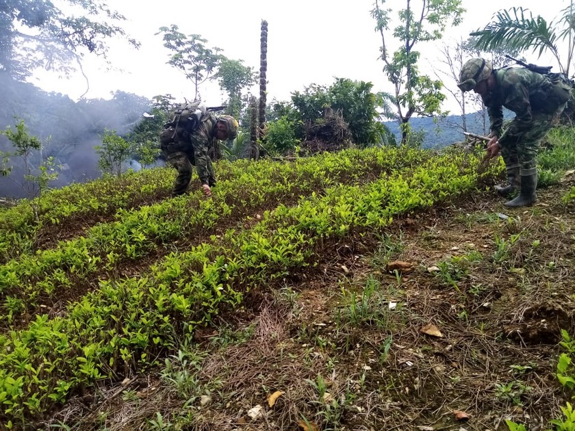 Además se registró contaminación en el suelo y fuentes hídricas por el vertimiento de químicos para el procesamiento de la pasta base de coca, por lo que se resaltó que en Chocó se han sembrado más de 19.000 árboles para reducir el impacto ambiental generado por los grupos armados organizados.