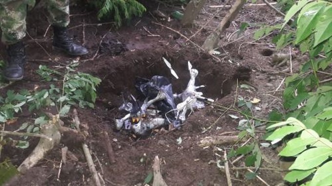 Los drones fueron ubicados en la vereda Alto Agua Clara, municipio de Tumaco, en Nariño, gracias al trabajo de inteligencia militar del Batallón Contra el Narcotráfico N.º4 que desarrolla labores de apoyo operacional en ese sector del país. En un área boscosa y escondidos se encontraban los drones que estaban cargados con 600 gramos de explosivo plástico, dos cordones de seguridad o llamada «mecha lenta», dos detonadores y material tipo metralla (clavos, tuercas y tornillos).