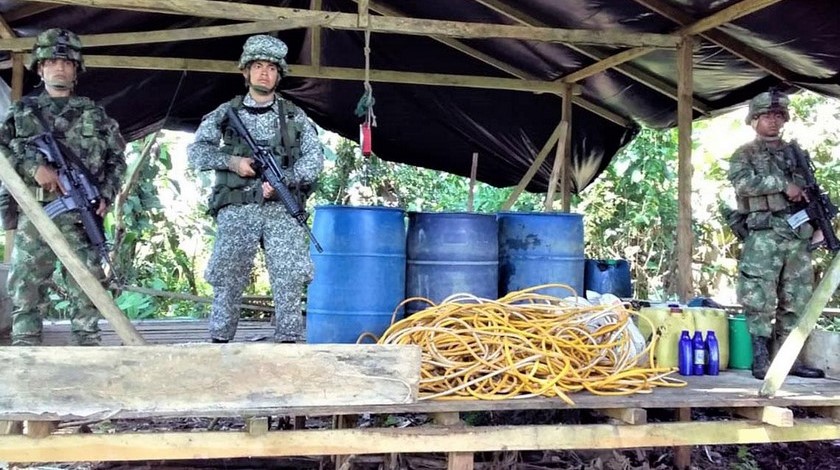 Destruyeron gigantesco laboratorio de grupos armados ilegales para procesar cocaína en el sur del país