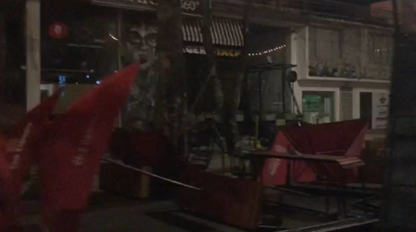 En este lugar habían dispuesto de mesas, sillas, luces y estaba organizado para que la gente pudiera ir a disfrutar de una comida, sin embargo, en medio de la manifestación acabaron con todo.