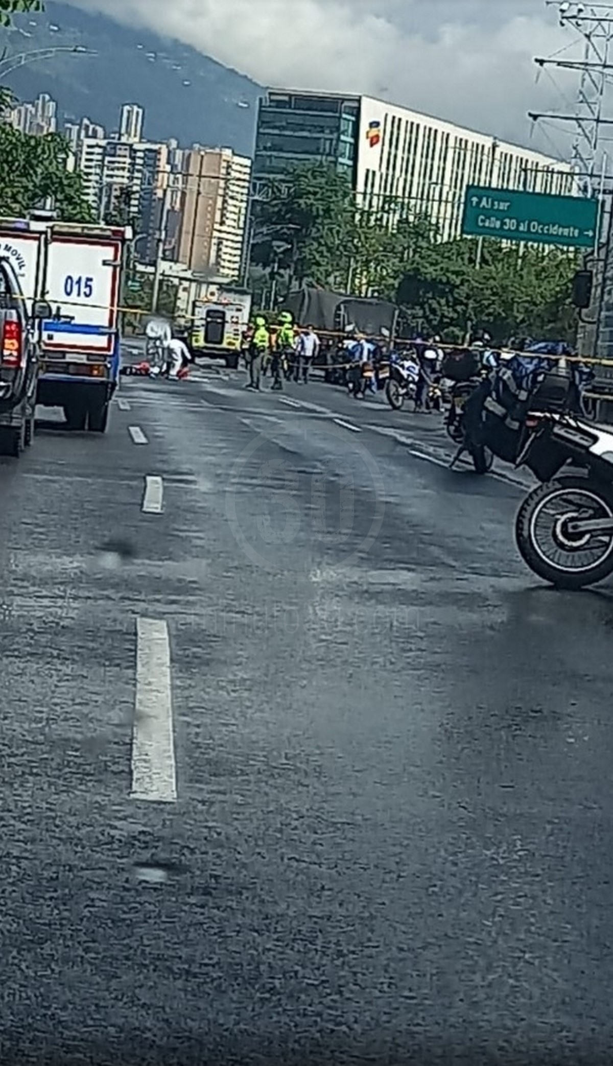 Según se pudo conocer, el accidente ocurrió sobre las 4:00 de la tarde de este jueves en la calzada oriental de la Autopista Sur, a la altura del puente Nutibara, en donde una motocicleta y un tractocamión colisionaron.