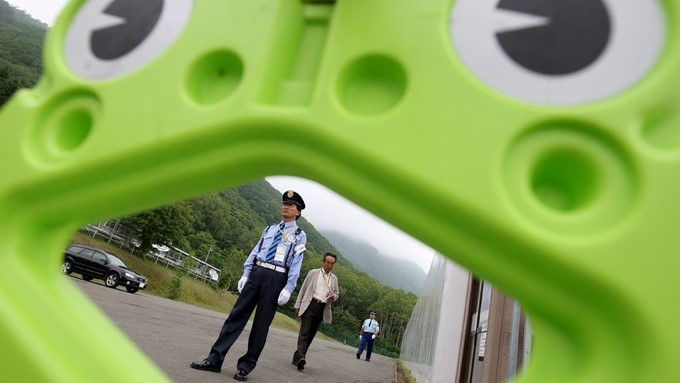Un policía japonés vigila el centro internacional de medios de Rusutsu