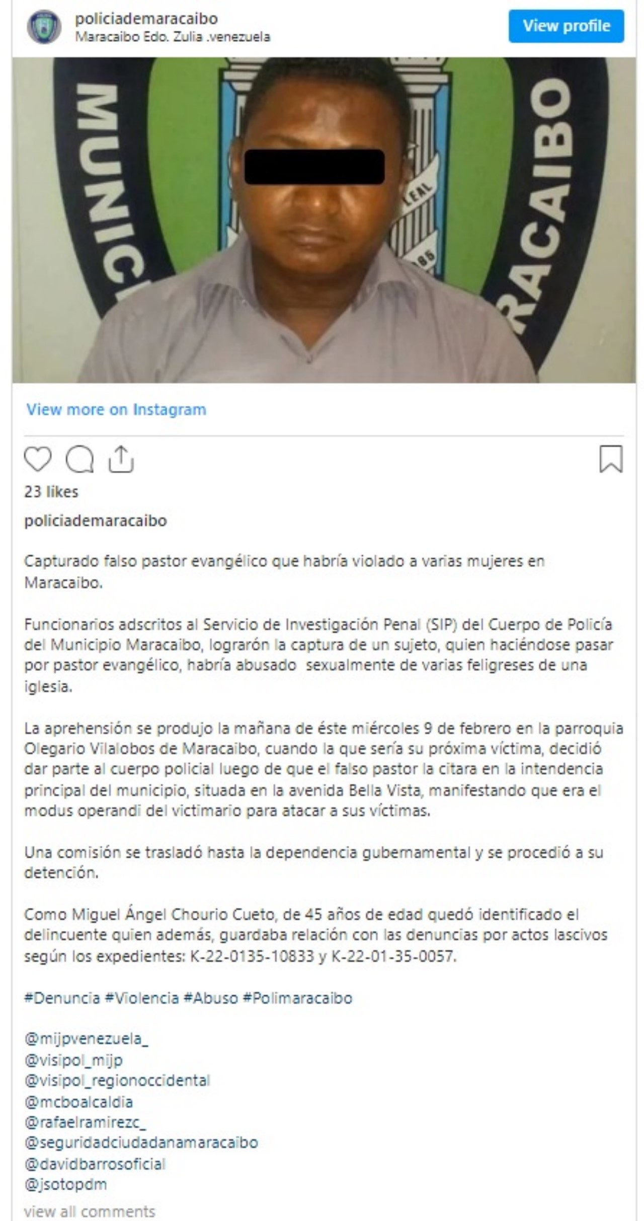 La policía de Maracaibo detuvo al pastor acusado de abusar a más de 50 mujeres en Venezuela.