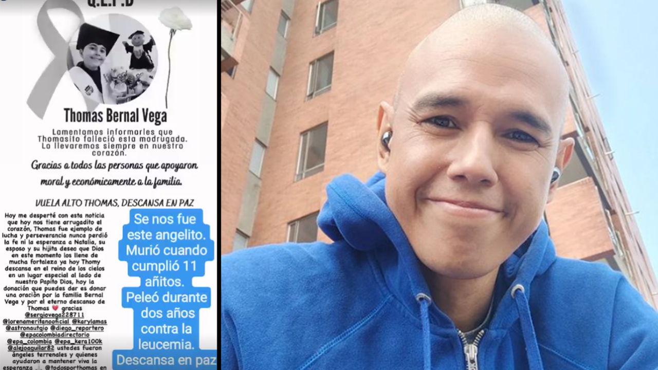El comunicador confirmó que Thomas Bernal Vega, un pequeño de 11 años, falleció el pasado fin de semana, luego de perder la batalla contra la leucemia, la cual le habían detectado en 2021.