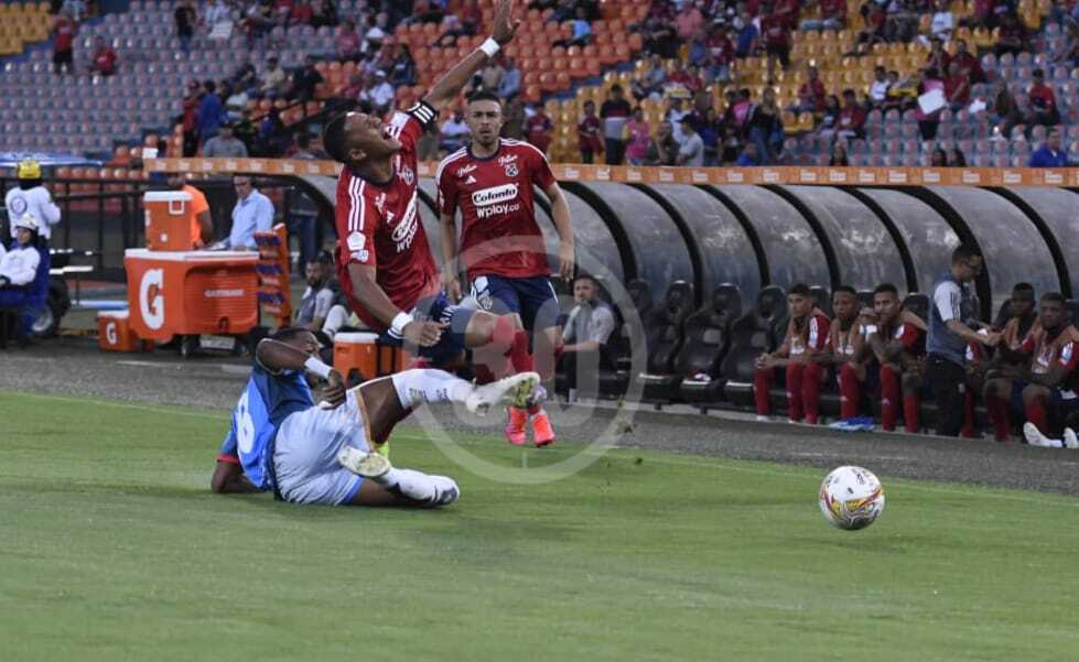 Al minuto 32 del compromiso, el juez decretó una falta penal de Jhon Palacios del DIM contra Roger Murillo de Fortaleza, en una jugada en la que el atacante iba camino a gol.