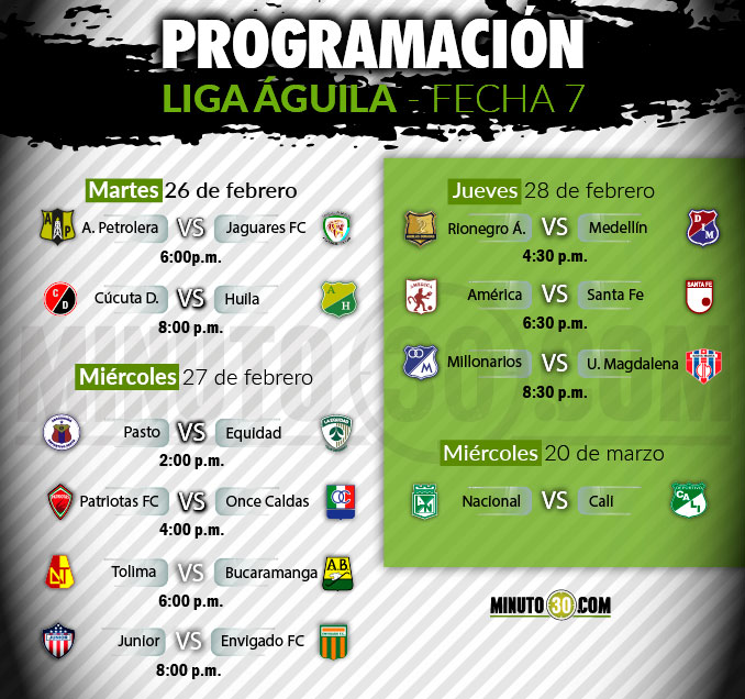 Minuto30.com-La Dimayor anunció este lunes cambios en los horarios de algunos de los partidos de la fecha 7 de la Liga Águila I-2019, que se cumplirá en el transcurso de la presente semana.