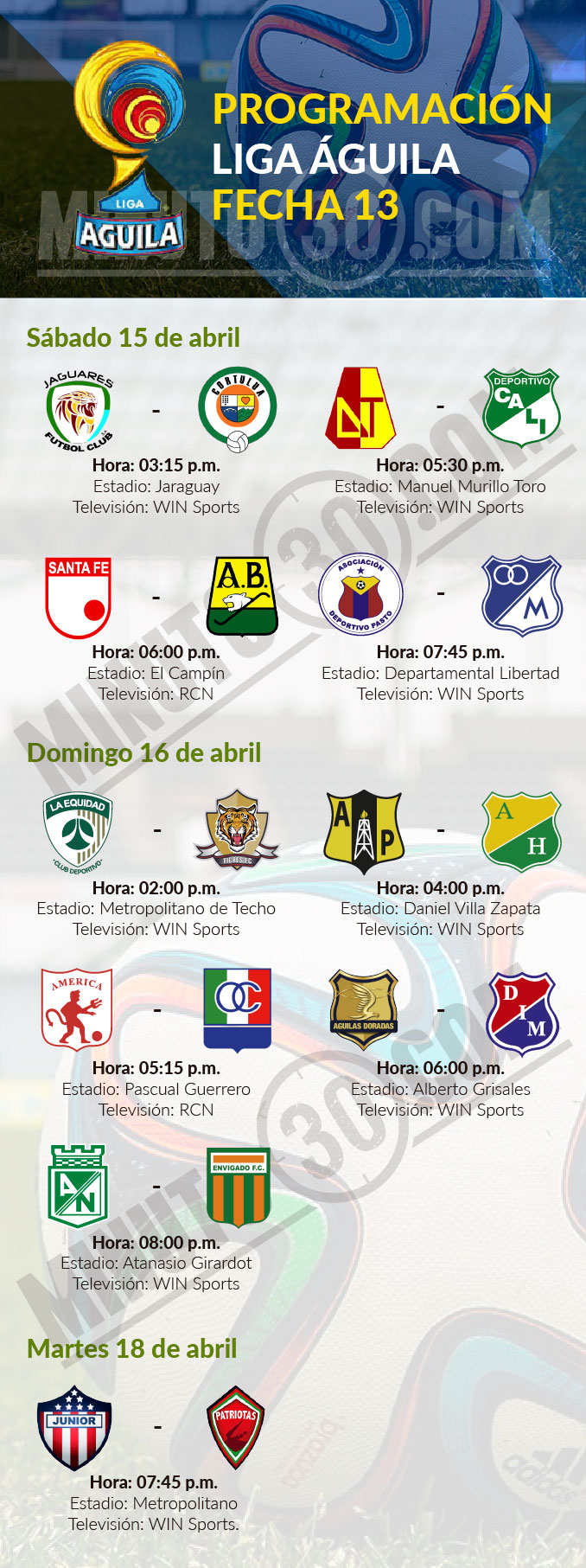 La Dimayor dio a conocer la programación de las fechas 12 y 13 de la Liga Águila I – 2017.