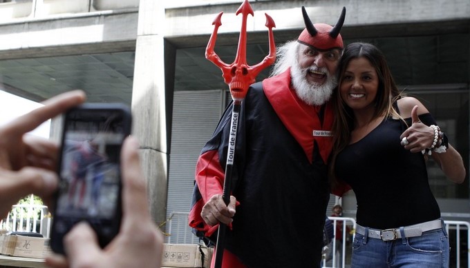 “El Diablo”, como es conocido desde 1992, cuando se enfundó en un traje rojo para seguir con su característico tridente a los pedalistas por las carreteras, sorprendió a los aficionados del ciclismo con su aparición en la feria del “L’etape Colombia by tour de Francia”.