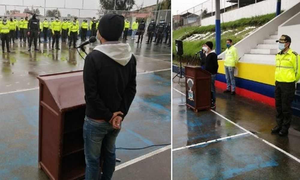 En medio de un acto simbólico el ciudadano rechazó todo acto de violencia para los agentes y para la ciudadanía. Con dos fotografías dejaron ver que el hombre tenía la palabra mientras contaba con la presencia de varios uniformados de la policía.
