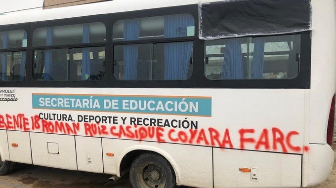 El bus de la secretaría de Educación del municipio de Ituango, ubicado en el Norte del departamento de Antioquia, fue pintado con mensajes alusivos al frente 18 de las Farc.
