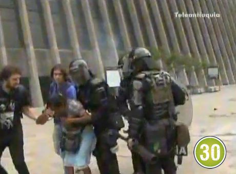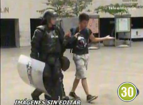 Hombres del ESMAD debieron entrar para controlar la gresca en el punto más importante de la política antioqueña, frente al Gobernador de Antioquia y el Alcalde de Medellín los manifestantes hicieron de las suyas.