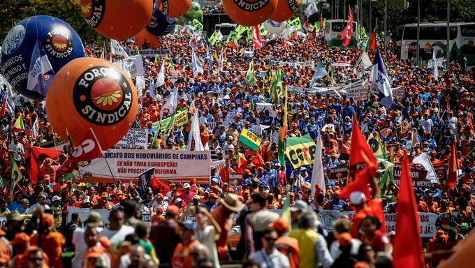 Protestas de los sindicatos en Brasilia contra las reformas que impulsa el Gobierno y para exigir la renuncia del Michel Temer
