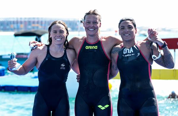 Intentó Gubecka escaparse a dos boyas del final, también la estadounidense Grimes, pero van Rouwendaal es quien controlaba la carrera, atenta a que nadie tomara metros de distancia. Sabía que en final apretado, tenía todas las de ganar, y así fue.