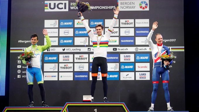 El corredor holandés Tom Dumoulin se ha proclamado campeón del mundo de Contrarreloj Individual dando toda una exhibición en la prueba de este miércoles de los Campeonatos del Mundo en ruta que se disputan en Bergen (Noruega), un recorrido de 31 kilómetros y final en alto del Monte Floyen.