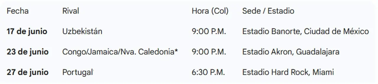El camino comenzará en territorio mexicano, donde la Selección espera contar con el apoyo masivo de la colonia colombiana, para luego cerrar la clasificación en el calor de Miami.