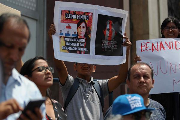 En el mensaje en el que hizo ese anuncio, Benavides apareció acompañada de varios integrantes del Ministerio Público, entre ellos, dos fiscales supremos, identificados como tal por sus insignias.