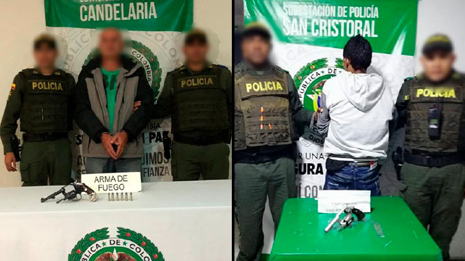 Uno fue capturado por la Subestación de Policía de San Cristóbal y el otro fue capturado por la Estación de Policía de La Candelaria ambos por porte ilegal de arma de fuego.