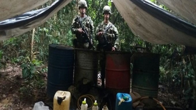 Dos laboratorios que pertenecían al ‘Eln’ y el ‘Clan del Golfo’ en los que eran procesados los insumos para obtener pasta base de coca, fueron hallados en el marco de la Campaña Militar y Policial Esparta en dos municipios de Norte de Santander.