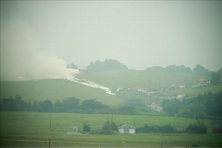 Los bomberos trabajaron para apagar el fuego entre los restos del avión, que quedaron dispersos sobre varios cientos de metros. Washington, 14 ago (EFE)