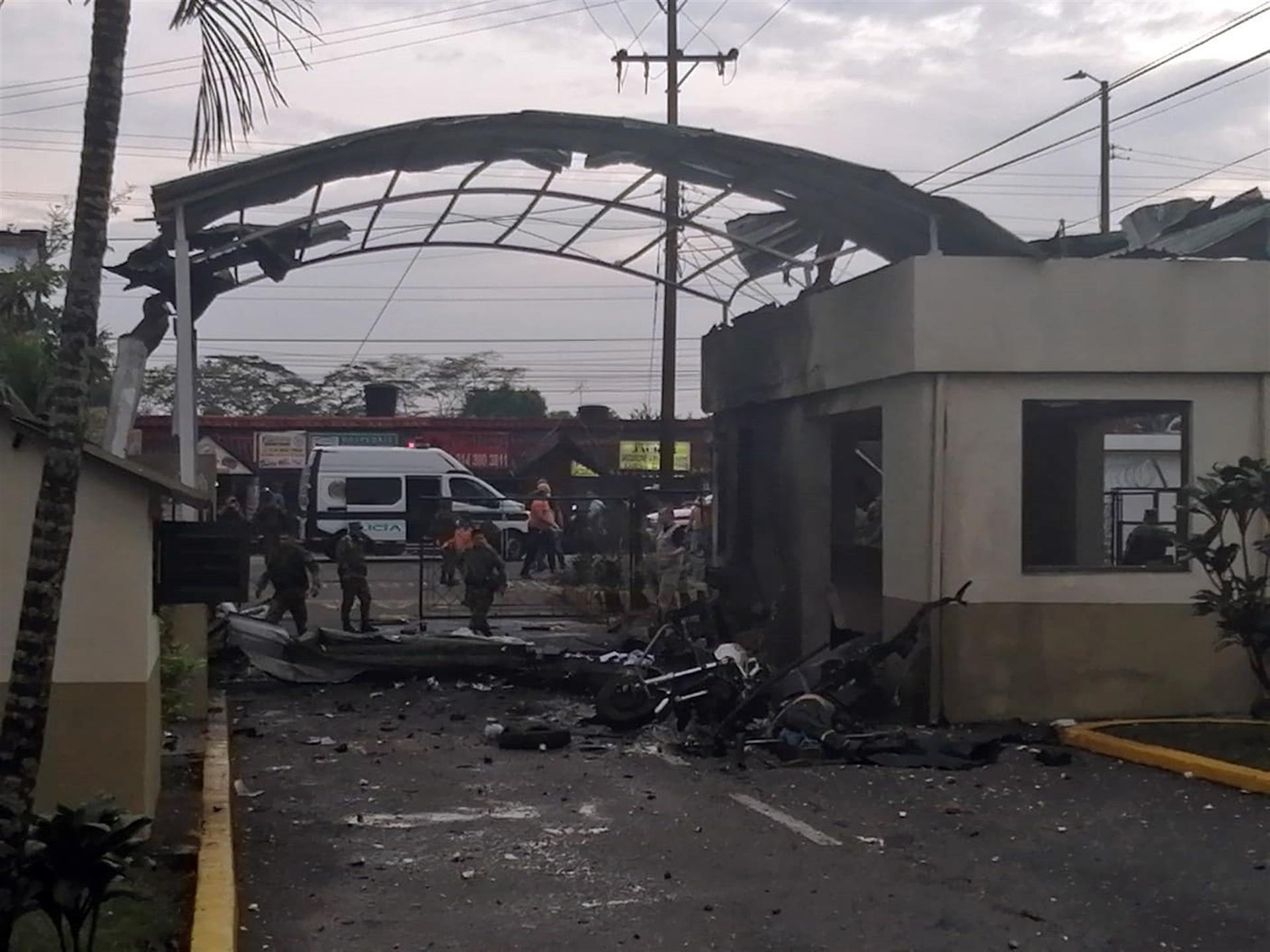 Fotografía cedida hoy por el Ejército Nacional de Colombia que muestra los destrozos causados por una explosión en el Batallón de Infantería N.21 Batalla Pantano de Vargas, ubicado en el municipio de Granada, departamento del Meta (Colombia). EFE/ Ejército Nacional de Colombia