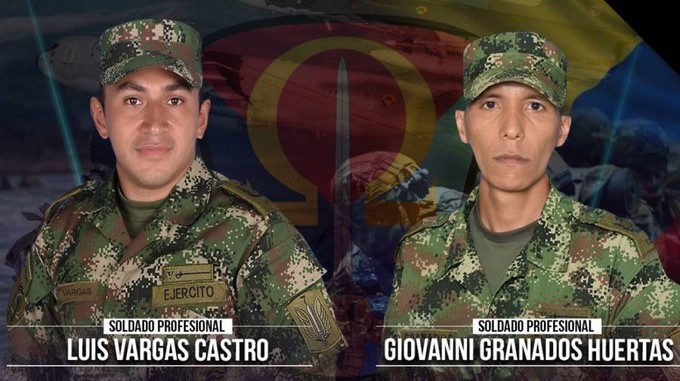 Los dos militares fallecidos fueron identificados como el profesional Luis Vargas Castro, oriundo de Nuevo Colón (Boyacá), y el soldado profesional Giovanni Granados Huertas, oriundo de Villanueva (Casanare).