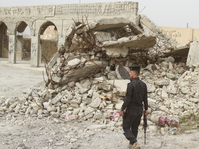 Un soldado iraquí junto a las ruinas de la mezquita de Al Nabi Yunes