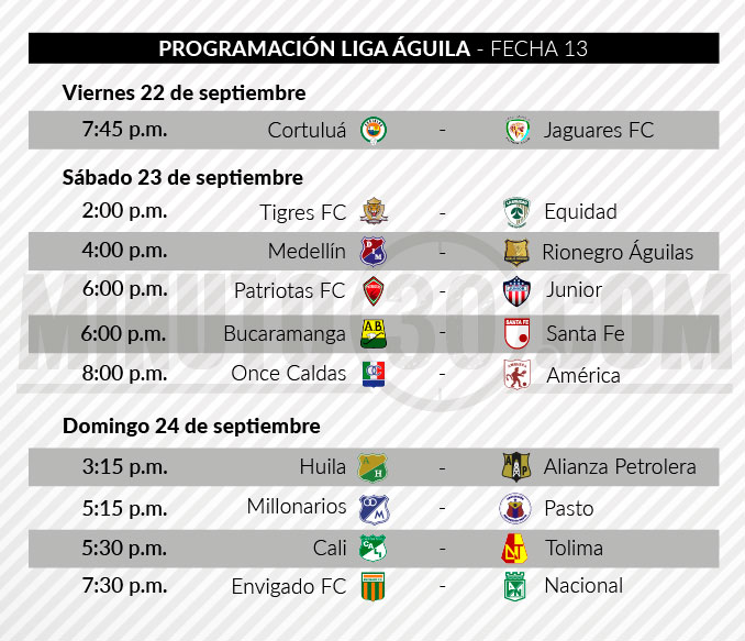 La jornada, que incluye duelos regionales para los antioqueños, se cumplirá entre el viernes 22 y el domingo 24 de septiembre.
