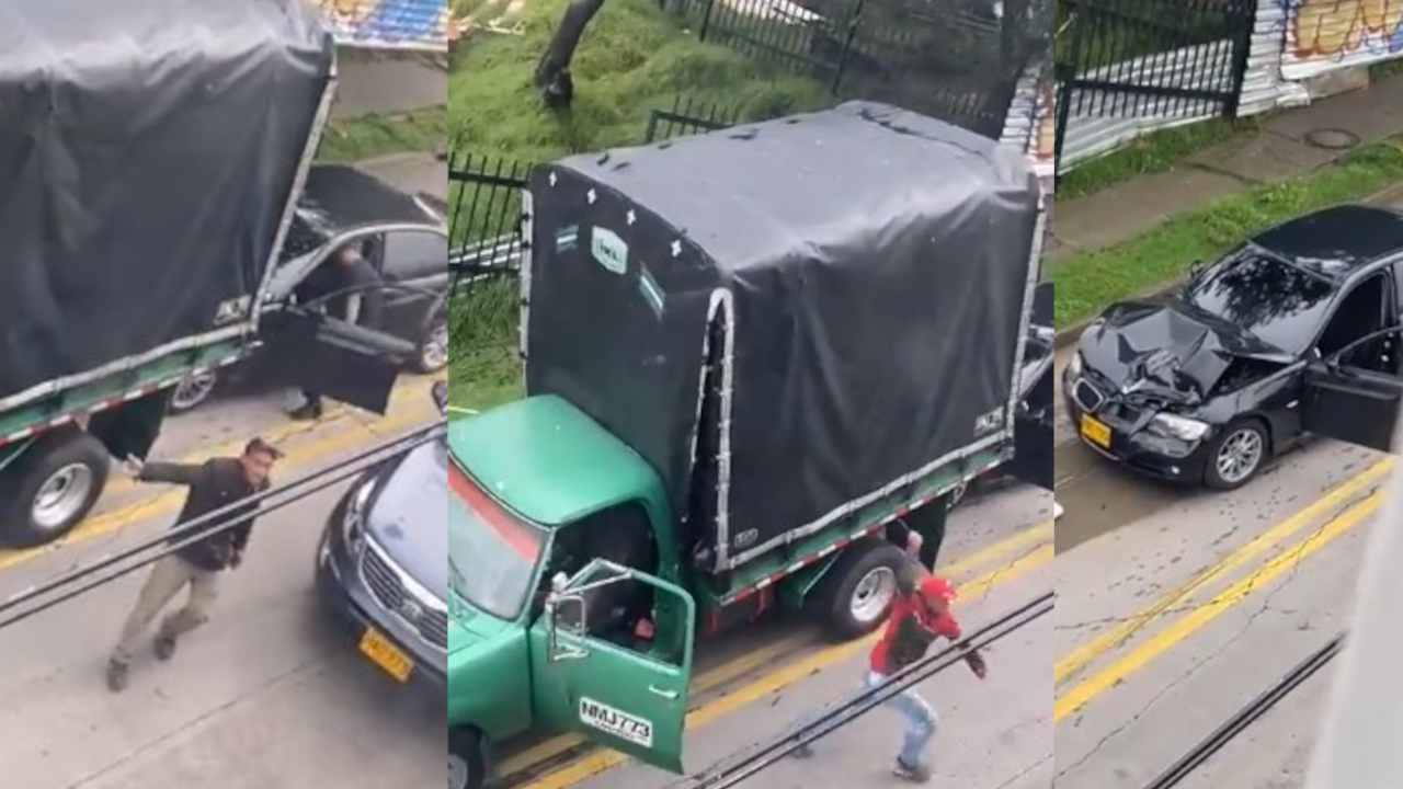 En Bogotá se vivió una violenta escena entre hombres, en medio de un choque donde terminó afectado un camión como de trasteos y un carro deportivo de la marca BMW.