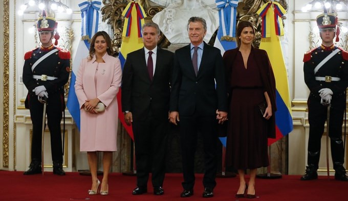 “Hoy, como presidente de Colombia, le expreso a usted y María Juliana (Awada, esposa de Macri) y todo su gabinete y pueblo argentino nuestro más profundo sentimiento de construir con ustedes una Latinoamérica que se libere para siempre de la demagogia y la dictadura”, dijo Duque al compartir un almuerzo con su par.