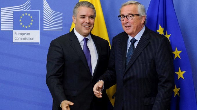El presidente de la Comisión Europea, Jean-Claude Juncker, recibe al presidente , Iván Duque.