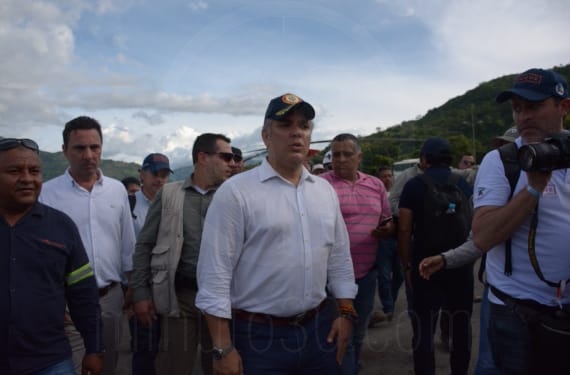 “Espero como presidente de los colombianos contribuir y ayudar en todo lo que sea posible para que el proyecto salga adelante y se mitiguen los riesgos”, expresó Duque a periodistas en Ituango,