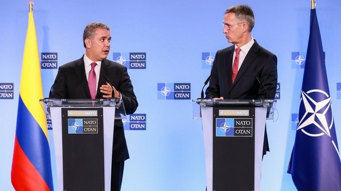 El presidente de Colombia, Iván Duque, destacó hoy junto al secretario general de la OTAN, Jens Stoltenberg, la cooperación entre ambas partes en ámbitos como el desminado, durante su primera visita a la sede de la Alianza Atlántica en Bruselas.