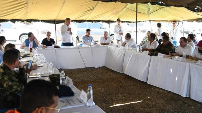 El mandatario, al hacer una primera intervención en la denominada carpa azul, donde escuchó aspectos importantes del proceso de reincorporación en esa zona, recordó que desde el inicio, su administración ha sido coherente con lo que el país quiere ver, que “es la construcción de la paz con legalidad, con seguridad, protegiendo los derechos de los ciudadanos”.