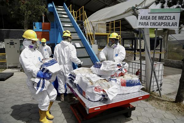 Con la encapsulación, la droga se mezcla con aglomerantes y aditivos de dureza para después ser arrojada a un vertedero de seguridad, donde finalmente es encapsulado bajo hormigón.