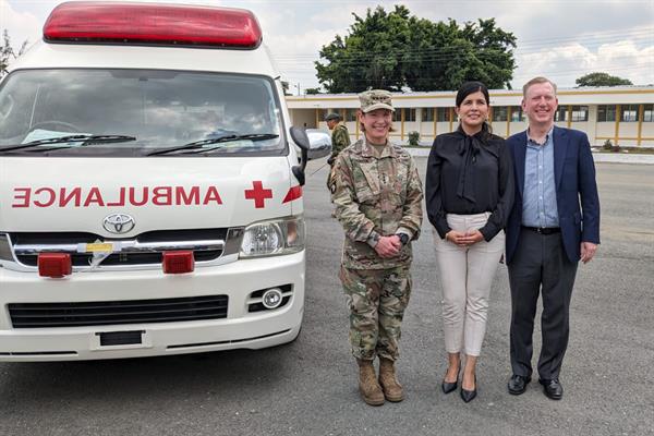 El aporte de Estados Unidos durante la visita de dichas autoridades también ha consistido en la entrega de más de 20.000 chalecos antibalas y la donación de más de un millón de dólares en equipos de seguridad y respuesta a emergencias, incluidas ambulancias y vehículos de apoyo logístico de defensa.