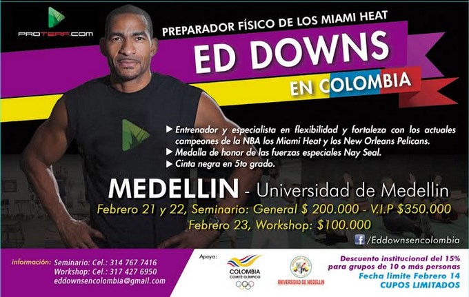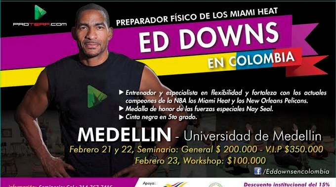 Minuto30.com.- Ed Downs, entrenador de deportistas profesionales como Lebron James y Dywane Wade, de los Miami Heat, Jennifer Capriati, tenista profesional y Landon Donovan jugador de los LA Galaxy de la MLS, estará entre el 21 y el 23 de febrero en Medellín para compartir sus conocimientos y experiencias con entrenadores, preparadores físicos y deportistas del ciclo olímpico, así como estudiantes de grado y posgrado de carreras relacionadas con el deporte.