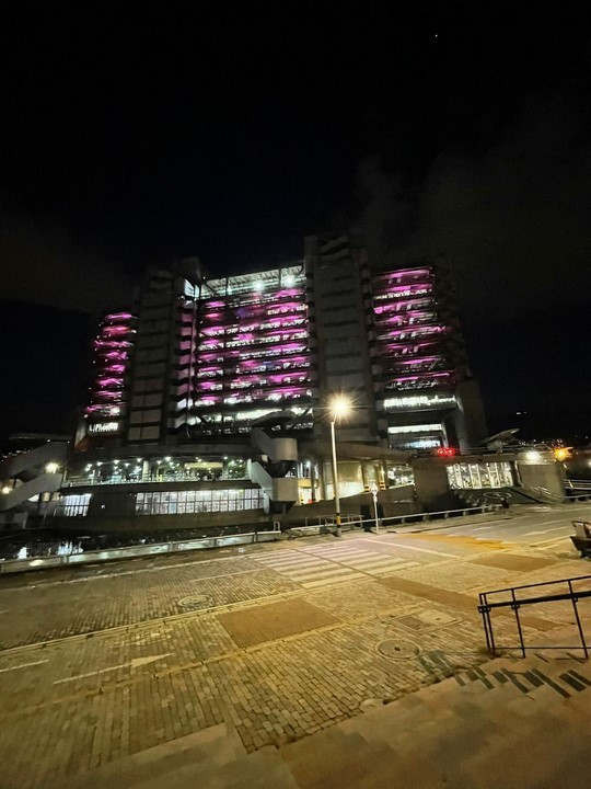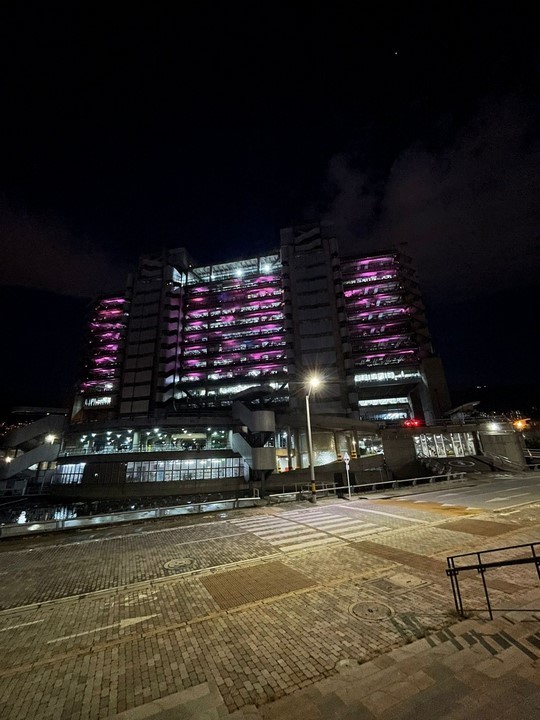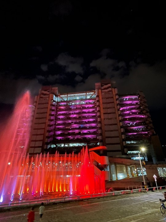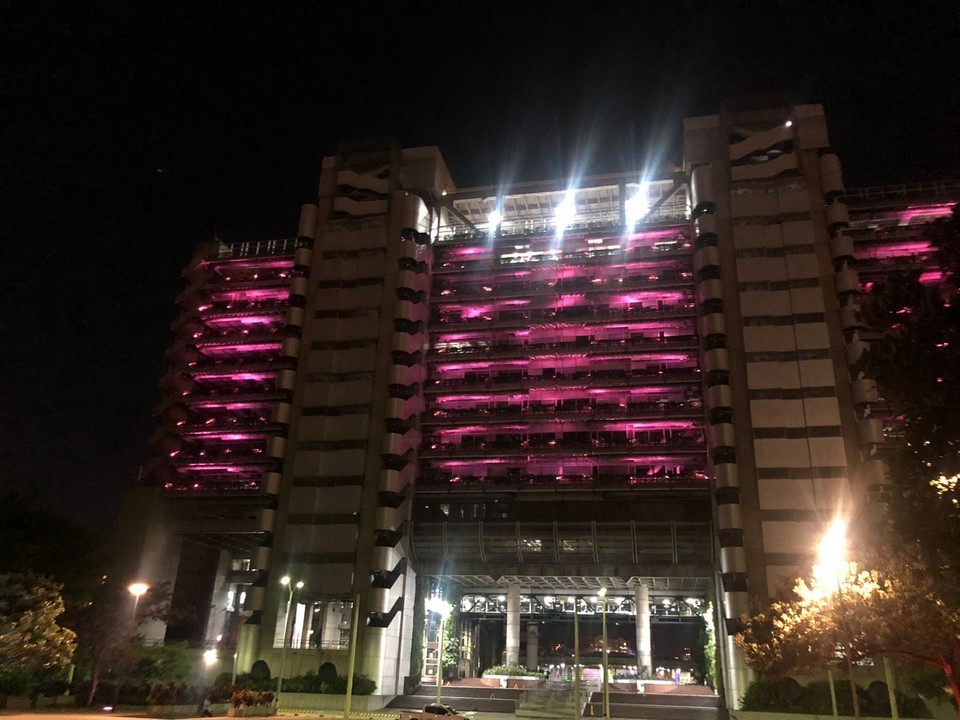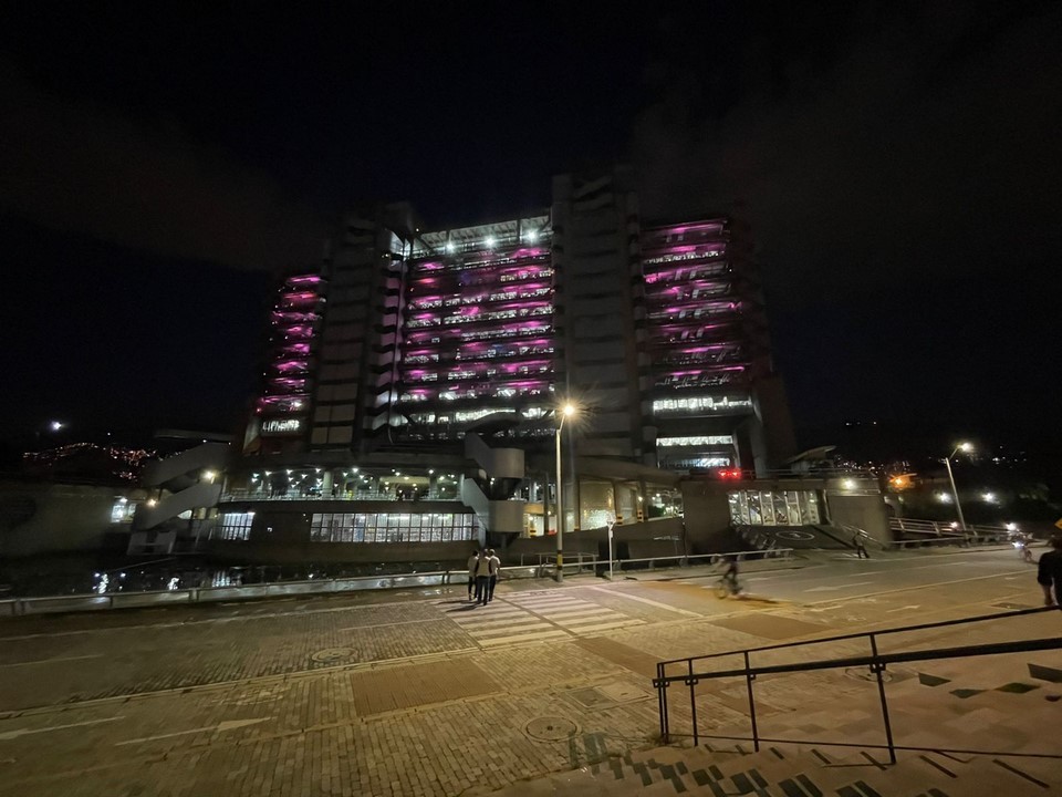 Un color rosa iluminaba el edificio y de acuerdo con la información oficial, esto se debe a la conmemoración del día internacional de la lucha contra el cáncer de mama, “como una invitación a vivir desde el autocuidado, la esperanza y la prevención esta enfermedad que afecta a mujeres y hombres en el mundo”, indicó la empresa.