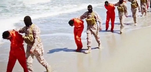 Los 16 supuestos etíopes, vestidos de negro, recibieron un tiro en la cabeza por parte de sus verdugos, que aparecen todos ellos encapuchados.