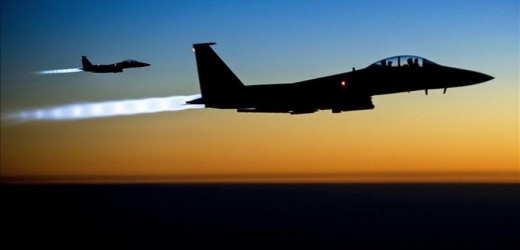 Caza F-15 vuela sobre el norte de Irak después de bombardear objetivos militares del EI. EFE/Archivo
