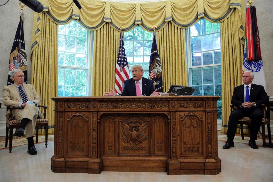 Trump se refirió a la pandemia durante una comparecencia ante periodistas en la Casa Blanca, donde este lunes recibió al líder de la mayoría republicana en el Senado, Mitch McConell, y el de la minoría en la Cámara de Representantes, Kevin McCarthy, para iniciar las negociaciones de un nuevo paquete de alivio económico, que se espera ronde el billón de dólares.