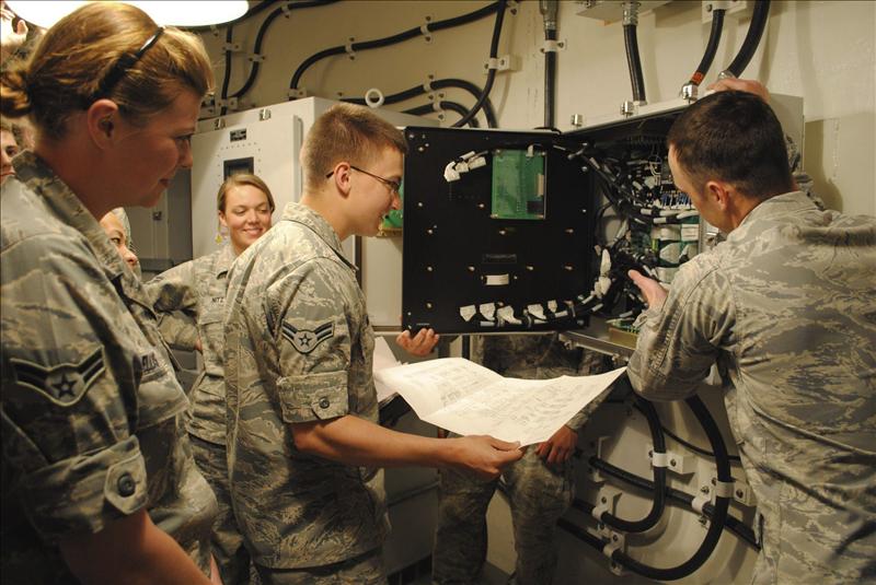 Fotografía de archivo facilitada por la Fuerza Aérea Estadounidense que muestra a varios ingenieros inspeccionando el sistema del Ala de Misiles 341 de la base aérea de Malmstrom (Montana), Estados Unidos