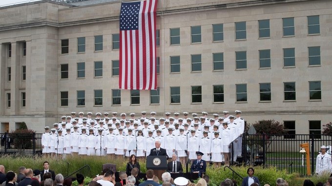 “Aunque el mal nos visitó en una mañana clara de martes, el valor y la fuerza respondieron entre el fuego y el humo en la ciudad de Nueva York, en una pradera de Pensilvania y en este mismo edificio, cuando personas inocentes de 91 países fueron asesinados en nuestro territorio”, apuntó Mattis.