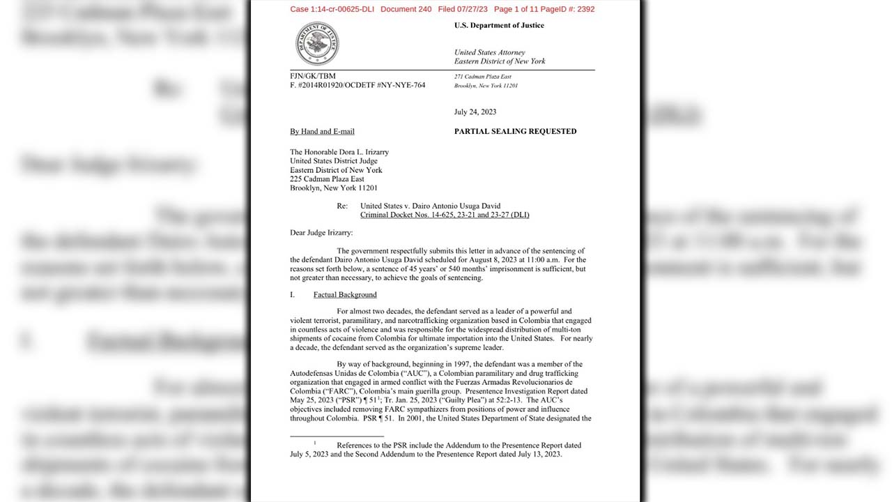 Fiscales de Estados Unidos piden 45 años de cárcel para Dairo Antonio Úsuga, alias ‘Otoniel’, excomandante del Clan del Golfo, por delitos relacionados con narcotráfico.