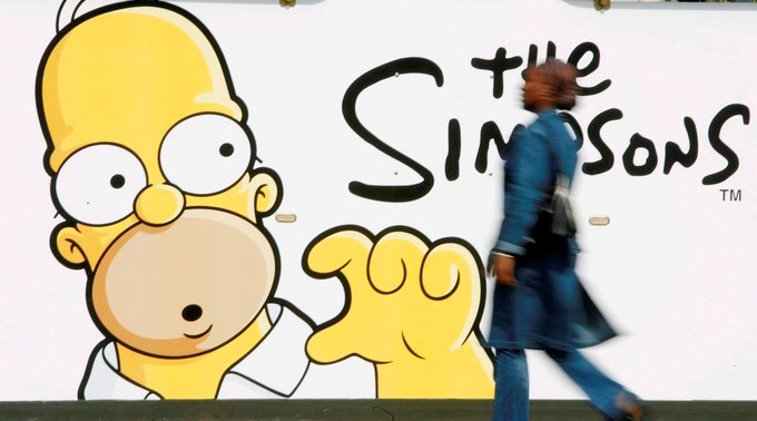 Una mujer pasa por delante de un cartel publicitario de la película de Los Simpson. EFE/Archivo