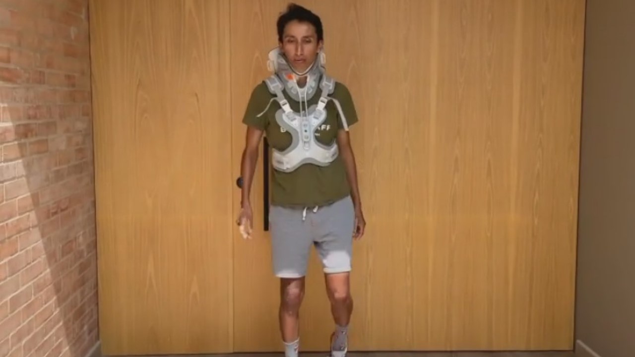 En el video mostró cómo avanza en su recuperación tras el fuerte accidente que por las graves lesiones tuvo que ser operado varias veces.