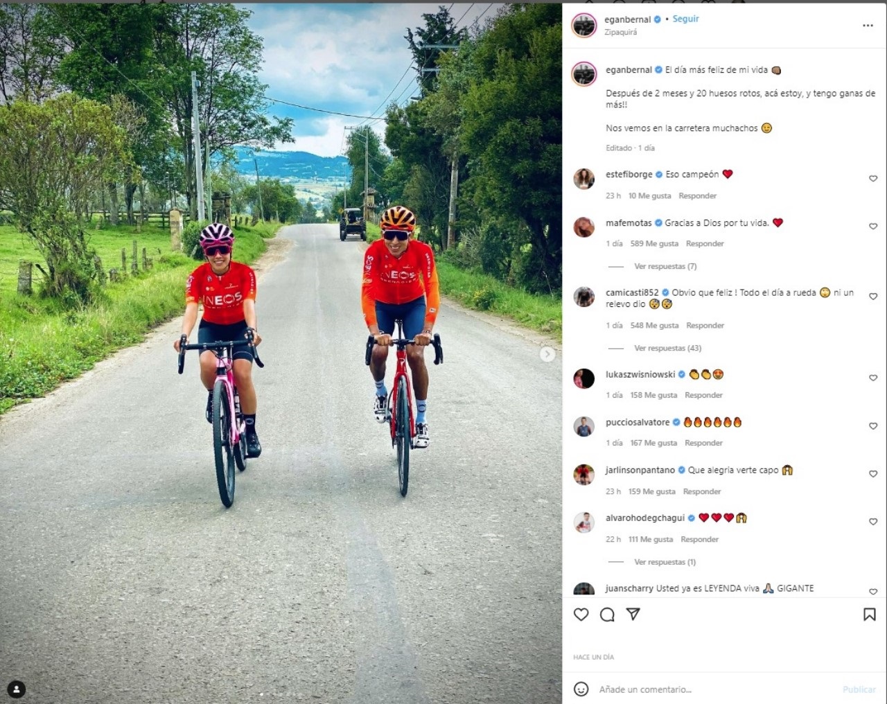 “2do Dia en bici. O yo no perdí tanto el nivel, o ellos nos han mejorado nada”, dijo el ciclista colombiano en el escrito de su publicación de Instagram.