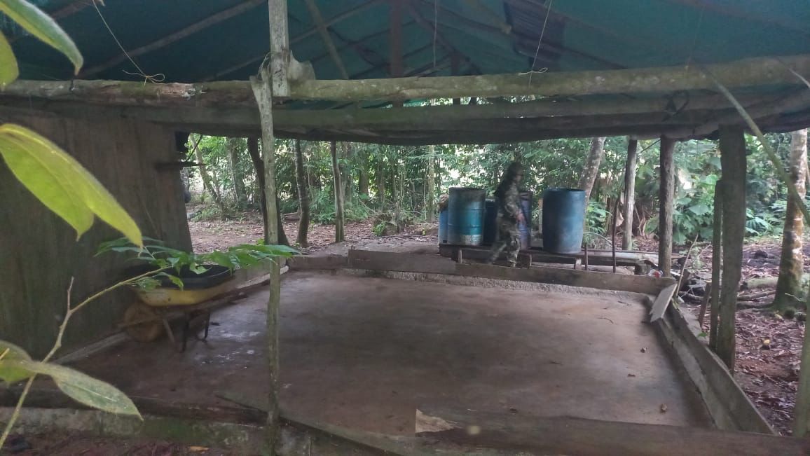 Durante las acciones militares destruyeron 6 estructuras en madera que contenían 24 canecas metálicas de ACPM, 22 canecas plásticas con gasolina, 8 bultos de cal de 25 kilogramos, 6 bultos de cemento de 50 kilogramos, 130 litros de amoniaco, 30 litros de ácido sulfúrico y 40 kilogramos de hoja de coca procesada, para un total de 2250 litros en insumos líquidos y 440 kilogramos de insumos sólidos.